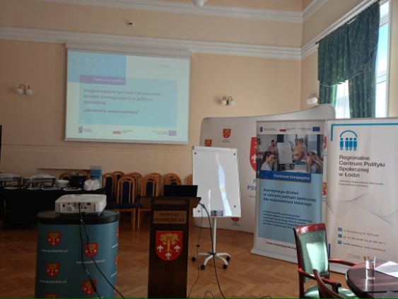 W dniu 28.05.2025 r. w Starostwie Powiatowym w Poddębicach rozpoczęło się pierwsze z cyklu 24 szkoleń pn. „Akademia Samorządowca” dotyczące zagadnień służących poszerzaniu umiejętności tworzenia diagnoz w zakresie usług społecznych świadczonych w gminach i powiatach na potrzeby koordynacji, tworzenia i wdrażania lokalnych dokumentów strategicznych dotyczących obszaru polityki społecznej.