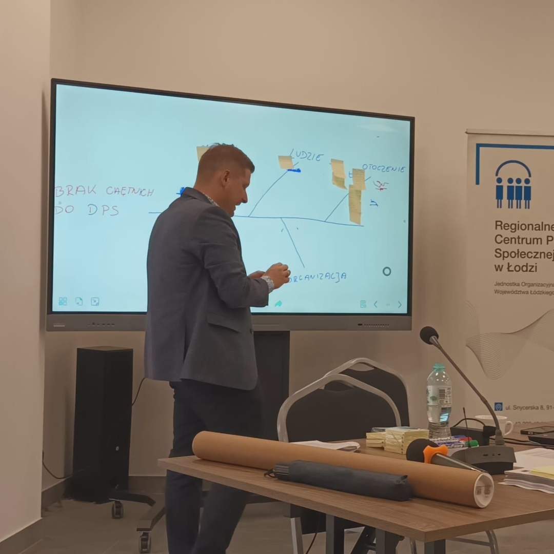 Trener omówił źródła danych, miary i statystyki wykorzystywane w diagnozie, a także poprowadził warsztaty z pozyskiwania i wizualizacji danych (z użyciem MS Excel i narzędzi analitycznych). Uczestnicy pracowali również nad analizą przyczynowo-skutkową, planowaniem działań naprawczych i wyznaczaniem celów z wykorzystaniem narzędzi projektowych i sztucznej inteligencji.