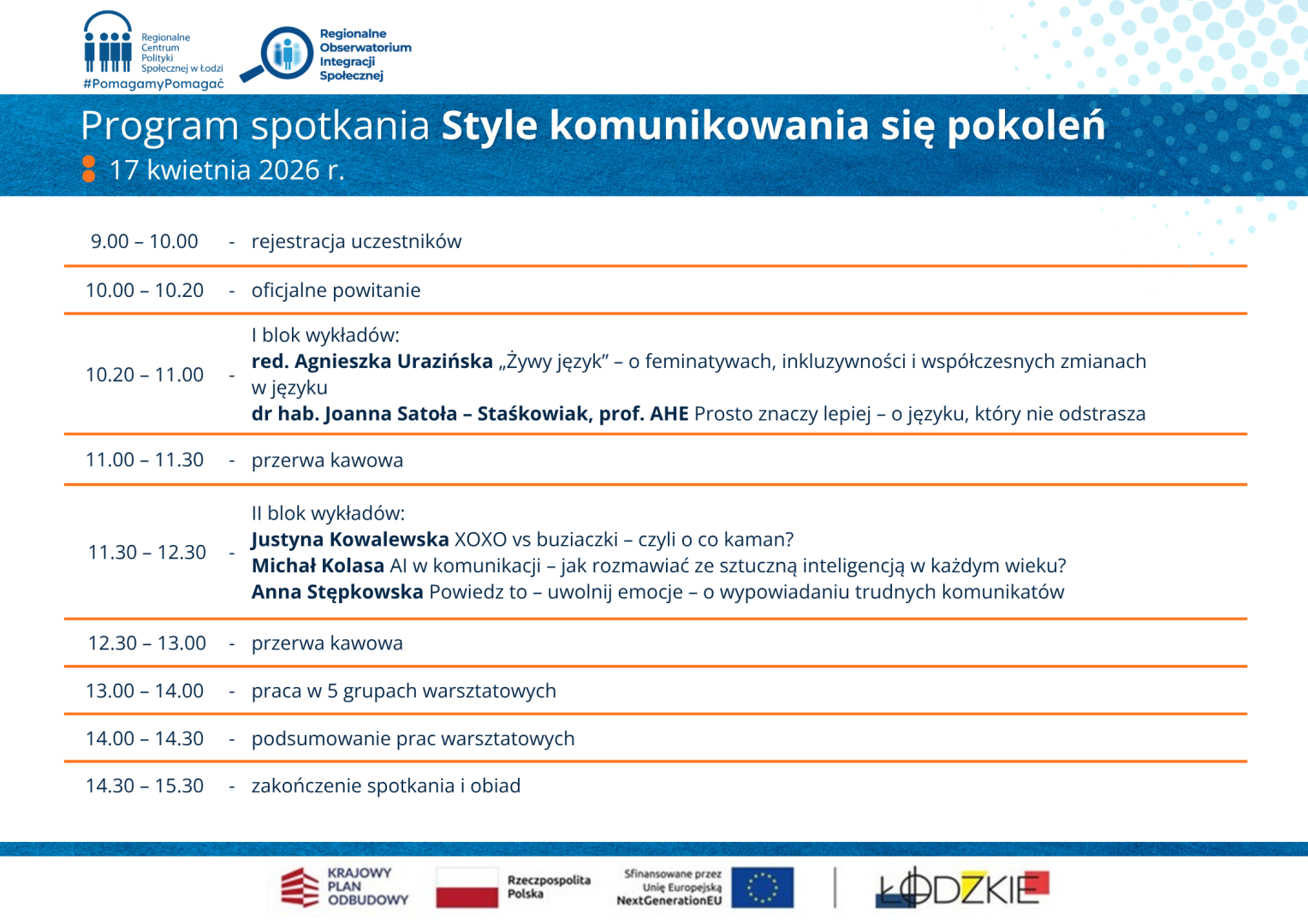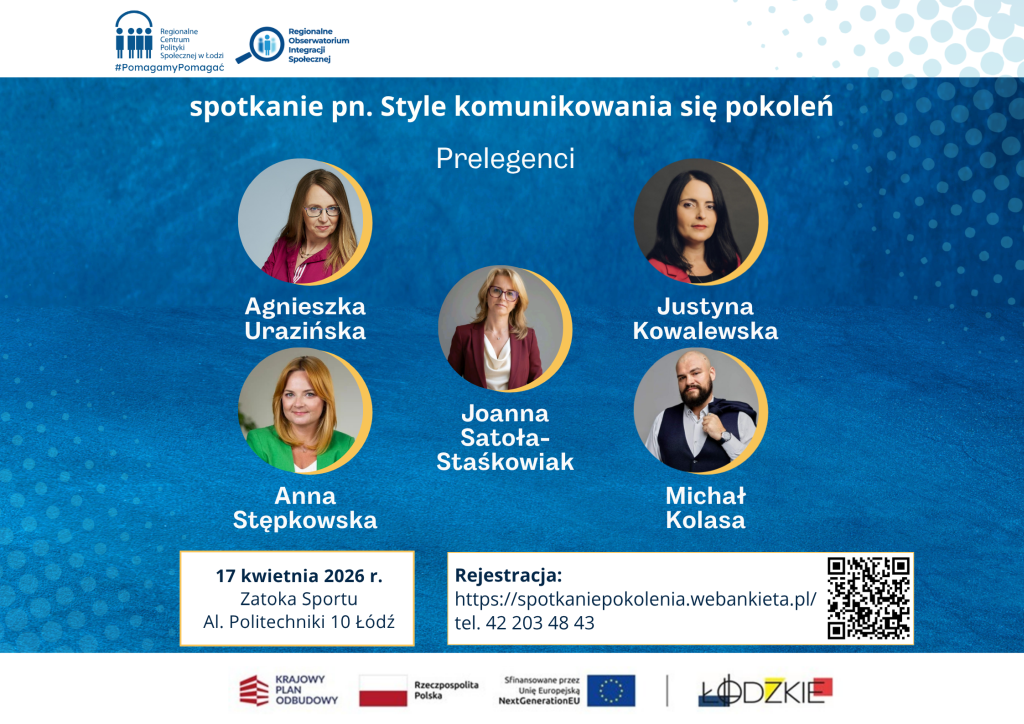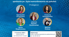 17 kwietnia 2026 r. w Akademickim Centrum Sportowo Dydaktycznym Politechniki Łódzkiej Zatoka Sportu Al. Politechniki 10 w Łodzi odbędzie się spotkanie pn. „Style komunikowania się pokoleń”.
