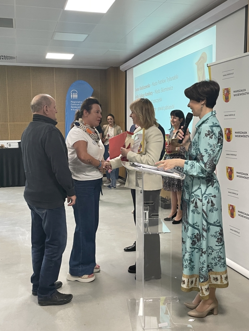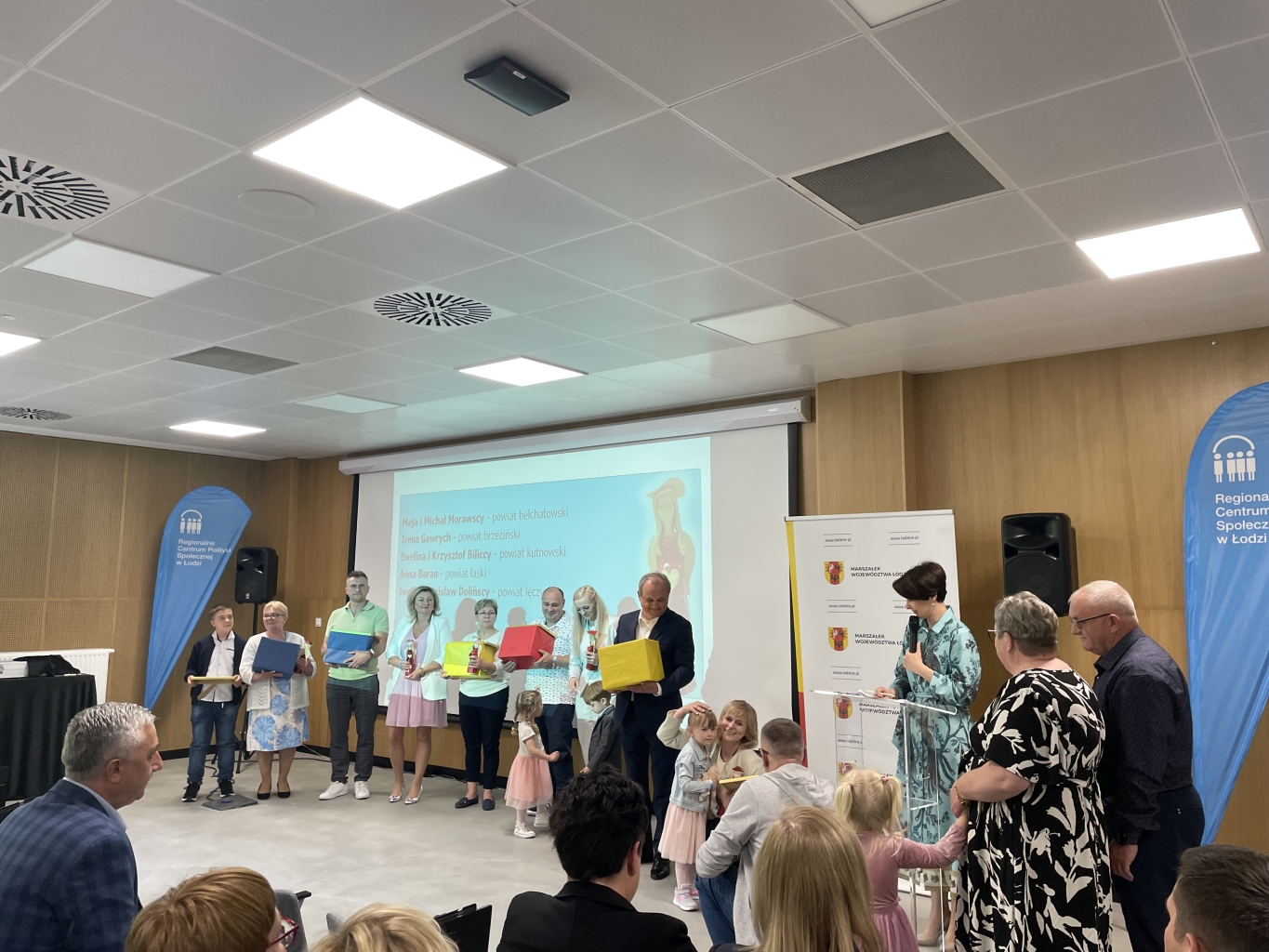 Ponieważ spotykaliśmy się, aby świętować zbliżający się Dzień Rodzicielstwa Zastępczego, uhonorowaliśmy osoby, których codzienna praca, empatia, zaangażowanie zasługują na szczególne wyróżnienie. Symboliczne statuetki aniołów wykonane przez Zakład Aktywności Zawodowej w Wieruszowie, podziękowania oraz podarunek otrzymały 24 rodziny zastępcze i prowadzący rodzinne domy dziecka.